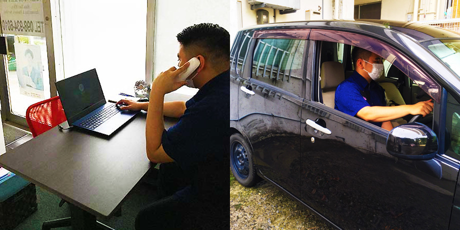 13:00 ~ | お客様の会社へ訪問。今は、ZOOMで打合せしたりすることもあります。 中部エリアのお客様がほどんどです。自家用車で向かいます。 夕方頃に事務所に戻り、外出中にあったお客様からの連絡などに対応します。 |